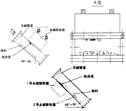 RCYA(1)系列管道永磁除铁器包括无磁管道和永磁铁两部分,专用于对封闭管道内非磁性物料的除铁,永磁除铁器内部采用高性能的硬磁材料组成复合磁系。具有体积小、磁力大、重量轻、除铁干净、方便、无能耗、使用寿命长等特点。适合没有输送皮带,只能提供下料溜槽的场合。当散状物料经过管道式永磁铁除铁器时,铁杂物被高场强的永磁铁所吸附,清除铁杂质时,打开管道专用门将杂质取除。主要应用于水泥、化工、塑料、耐火材料、建材等行业的下料管道中清除杂物。