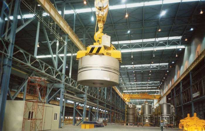 起重电磁铁,其设计型号与钢带卷参数包括钢带卷的重量、外径尺寸以及纵向界面宽度等密切相关。其吊运方式也与钢带卷的外形有着直接的关系,如垂直型吊运